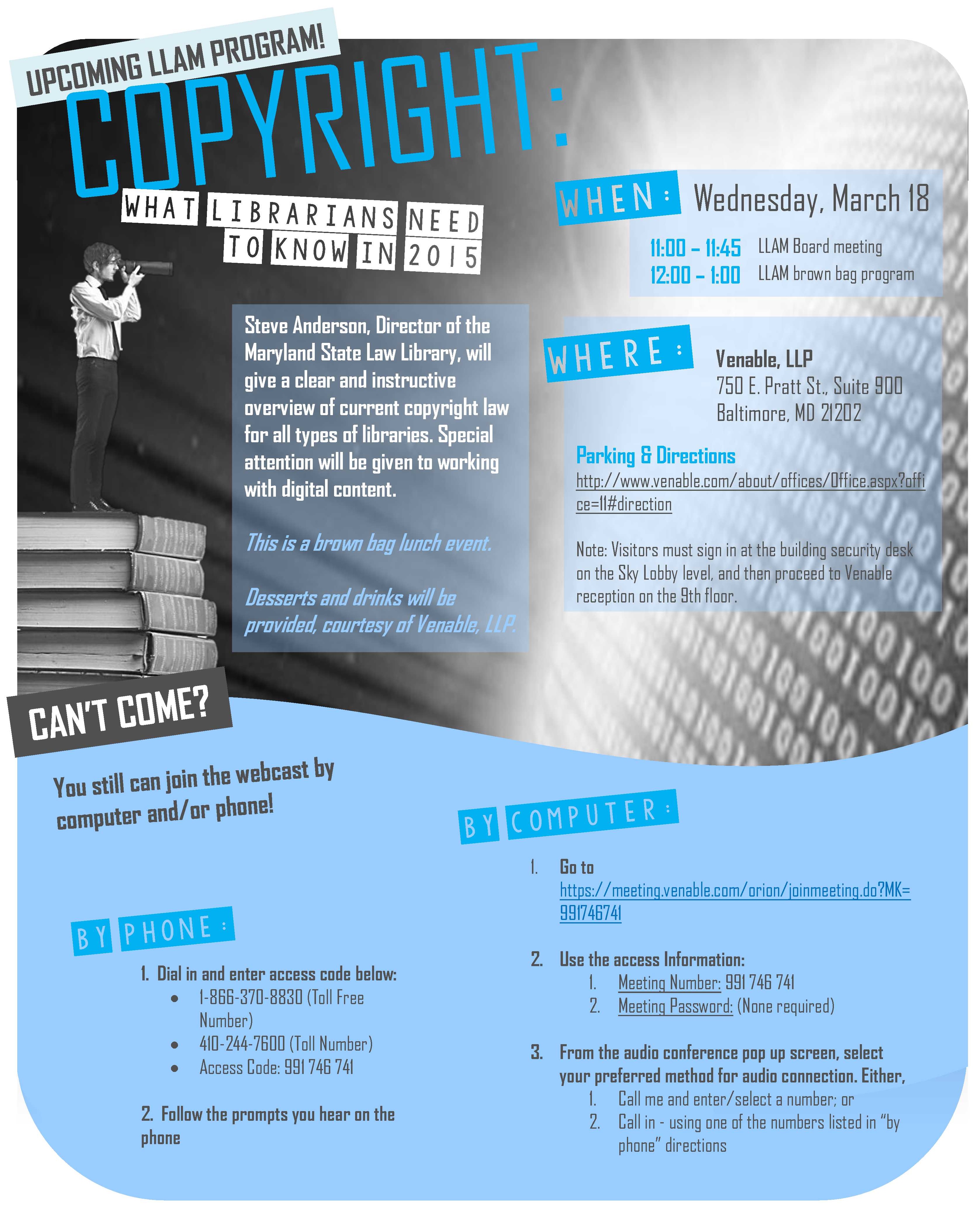 This post has been updated as of 3/18/2015 to include the PowerPoint Presentation for this program. CLICK HERE FOR THE PROGRAM MATERIALS: LLAM Copyright